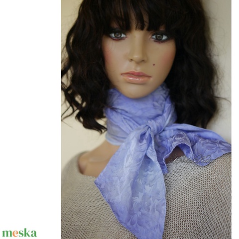 TULIPÁNOS SELYEMSÁL - exkluzív jacquard 100% hernyóselyem batikolt sál / égkék