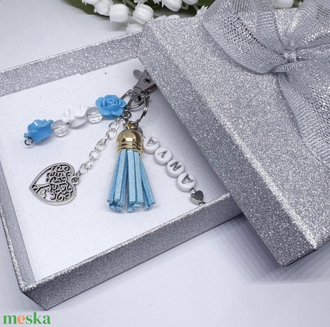 Személyre Szabott "ANYA" Kulcstartó – Életfa Medállal és Világoskék