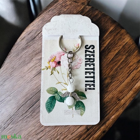 Ásvány angyalka kulcstartó tejkvarccal többféle kártyával