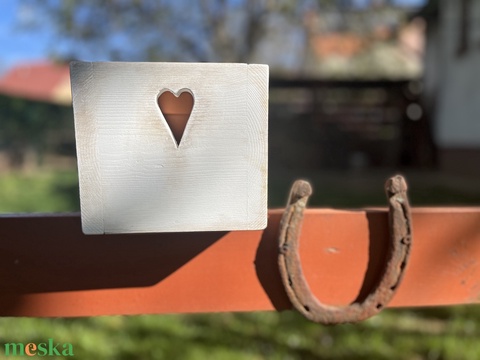 Virágtartó dobozka / szíves, antikolt fehér/