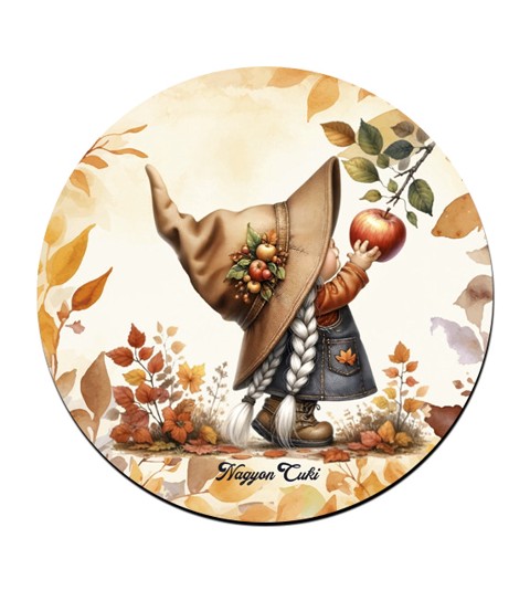 Őszi manó lány és az alma mintás poháralátét | Egyedi Ajándék Nőknek és Manó rajongóknak | nagyoncuki.hu Hozd el az őszi erdők mesebeli hangulatát otthonodba vagy ajándékozd meg vele azokat, akik imádják a bájos, mesebeli manókat! Ez a Cuki Őszi Manó poháralátét nem csupán megóvja bútoraidat a karcolásoktól és a nedvességtől, hanem egy szívből jövő, mosolyt fakasztó ajándék ötlet azoknak, akik értékelik az egyediséget és a manók varázslatos világát. Ez a különleges poháralátét egy imádnivaló, cuki manót ábrázol, aki az őszi avarban, a legszebb faleveleket és terméseket gyűjtve élvezi a pillanatot. A kedves manó figurája a természet, a nyugalom és a megbecsülés szeretetét sugározza. A részletgazdag és vidám dizájn garantáltan jókedvre derít, és egyedi, álmodozó, meghitt hangulatot kölcsönöz környezetének. Tökéletes társ a reggeli kávéhoz, a délutáni teához vagy egy esti, forró italhoz, mely közben a képzeleted szabadon szárnyalhat.