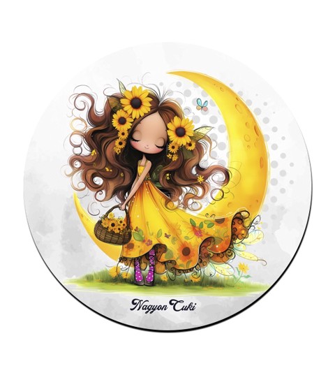 Imádni fogod ezt a kedves, félholdon üldögélő, napraforgós tündérlányt, ami garantáltan mosolyt csal az arcodra és feldobja az asztalodat.. :)