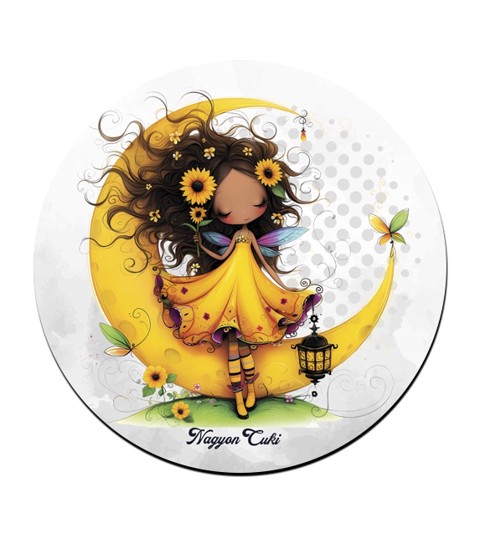 Imádni fogod ezt a kedves, félholdon üldögélő, napraforgós tündérlányt, ami garantáltan mosolyt csal az arcodra és feldobja az asztalodat.. :)