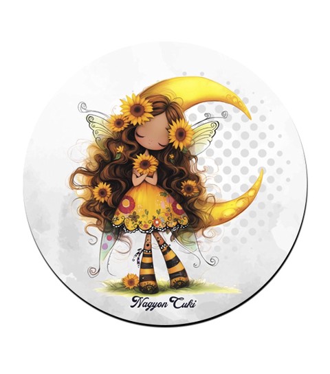 Imádni fogod ezt a kedves, félholdon üldögélő, napraforgós tündérlányt, ami garantáltan mosolyt csal az arcodra és feldobja az asztalodat.. :)