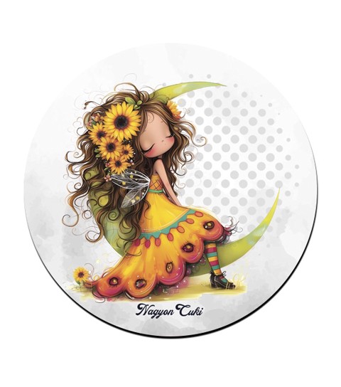 Imádni fogod ezt a kedves, félholdon üldögélő, napraforgós tündérlányt, ami garantáltan mosolyt csal az arcodra és feldobja az asztalodat.. :)