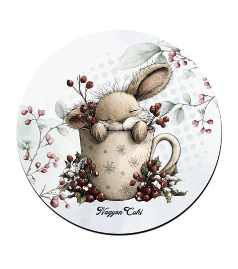 Cuki téli nyuszi bögrében Poháralátét | Egyedi Ajándék & téli Dekor| nagyoncuki.hu Hozd el az apró csodák, a szorgalom és az ünnepi varázs tökéletes harmóniáját otthonodba, vagy ajándékozd meg vele azokat, akik imádják a bájos, letisztult erdei állatokat és a karácsonyt! Ez a Cuki téli nyuszi mintás poháralátét nem csupán megóvja bútoraidat a karcolásoktól és a nedvességtől, hanem egy szívből jövő, mosolyt fakasztó téli ajándék ötlet azoknak, akik értékelik az egyediséget és a meghitt téli dekorációt. Tökéletes ajándék mindenkinek, aki szereti az aranyos kiegészítőket és az egereket.