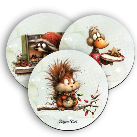 3 db aranyos karácsonyi erdei varázs Kör Alakú Poháralátét Szett | Egyedi Ajándék & Téli otthon dekor | nagyoncuki.hu Hozd el a téli erdő báját, a havazás meghittségét és az Erdei Varázs tökéletes harmóniáját otthonodba, vagy ajándékozd meg vele azokat, akik imádják a bájos, letisztult erdei állatokat! Ez a szeretettel tervezett 3 darabos aranyos karácsonyi Erdei Varázs poháralátét szett nem csupán praktikus kiegészítő, hanem egy igazi szívhez szóló apróság, amely mosolyt csal az arcokra és az erdei állatok szelíd báját ünnepli. Tökéletes választás, ha szeretnéd feldobni az ünnepi asztal hangulatát, kedveskedni egy barátnak, aki rajong az erdei állatokért és a téli dekorációért, vagy egyedi ajándékkal meglepni a családot. A poháralátéteket egytől egyig mi, a nagyoncuki.hu csapata tervezzük és nagy gondossággal készítjük. :) Éppen emiatt biztos lehetsz benne, hogy egy igazán eredeti és máshol nem kapható erdei ajándék szettel gazdagodsz. Ez a szett ideális választás, ha különleges ajándékot keresel karácsonyra, születésnapra, névnapra vagy csak úgy, egy kedves meglepetésként.