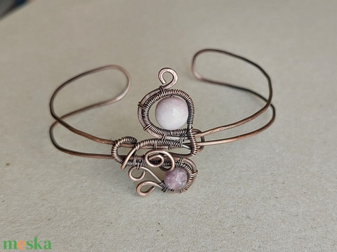 Vörösréz karkötő lepidolit és kunzit ásvány kövekkel