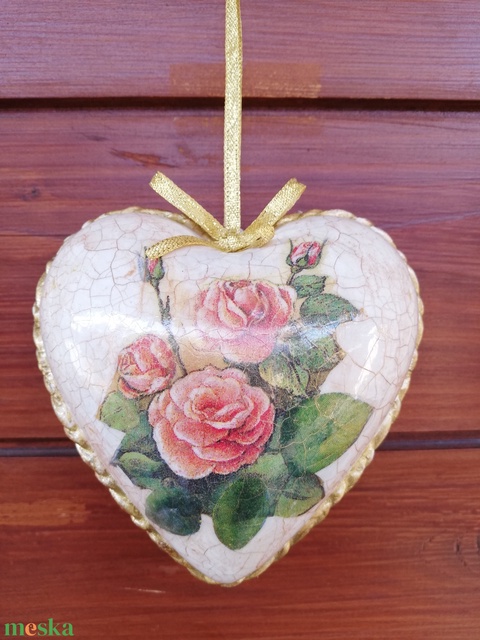- Anyag/Összetevő akril szív, festékek és ragasztók, lakkok, szalvéta, gyurma, szalag