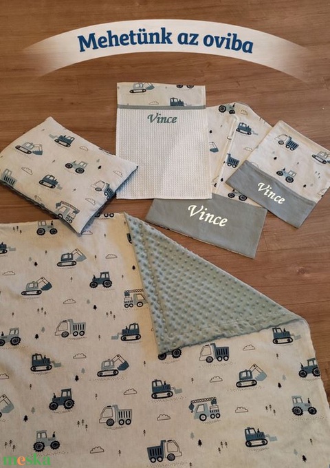A szett gondosan összeválogatott darabokból áll, hogy az óvodai mindennapokban praktikus és könnyen használható legyen. A takaró egyik oldala mintás pamut, a másik oldala puha, minky anyag, amely kellemes meleget ad a pihenéshez.