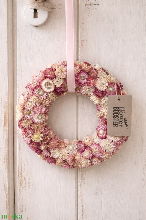 Szárított szalmarózsa koszorú ajtódísznek, vagy asztaldísznek