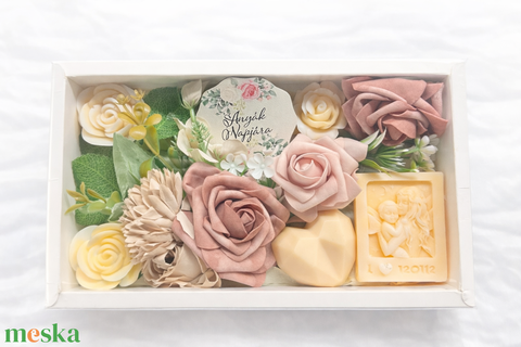 Anyák napi prémium ajándék box – virágok és kézműves szappan harmóniája