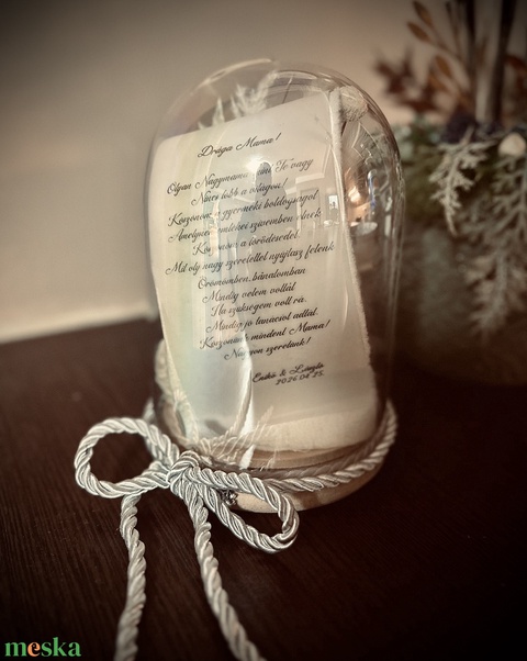 „Örök pillanat” – idézetes virágkompozíció üvegbúrában