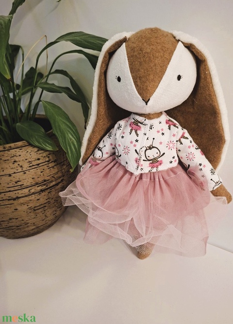 Nyuszi lány, tüll szoknyában, kabátban - kézműves gyerekjáték, öltöztethető játékfigura