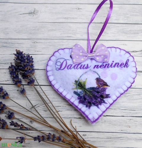 Dadus néninek pedagógus napra/Óvodai búcsúztatóra készült levendulás szív