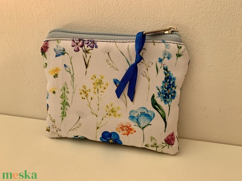 Kék-virág mintás kártyatartó, Neszesszer, Irattartó, Pipere tároló, Textil tároló