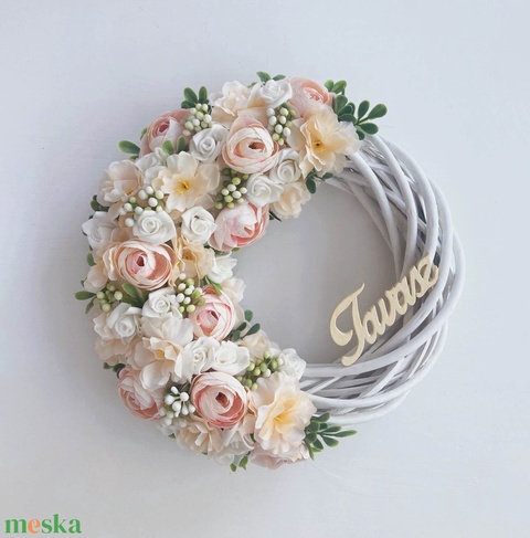- Anyag/Összetevő koszorú alap, selyemvirág, habrózsa