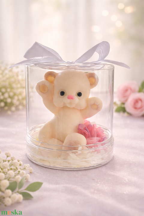 Kedves, kézzel készült szappanos maci elegáns díszdobozban. Finoman illatos, bőrbarát szappan