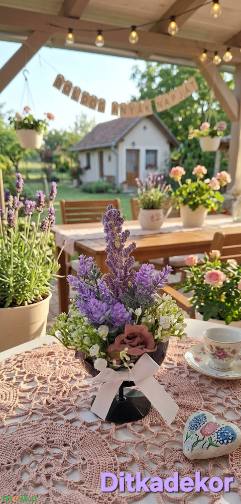 „Anyák Napi❤️ Levendula-varázs” – Rusztikus asztaldísz vintage stílusban(15cm magas)