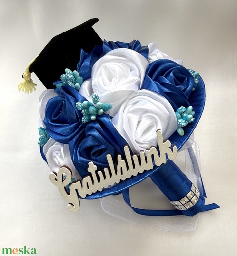 Királykék - fehér ballagási csokor