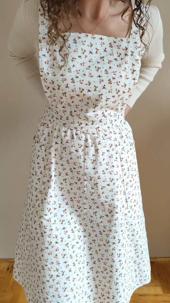 Rózsa kötény - Vintage hangulat, praktikus kialakítás, 100% pamut