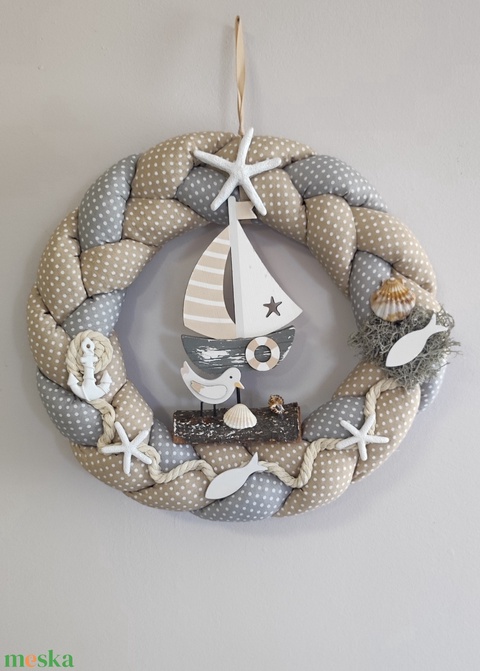 Tengerparti hangulatú, kézzel készült dekor koszorú