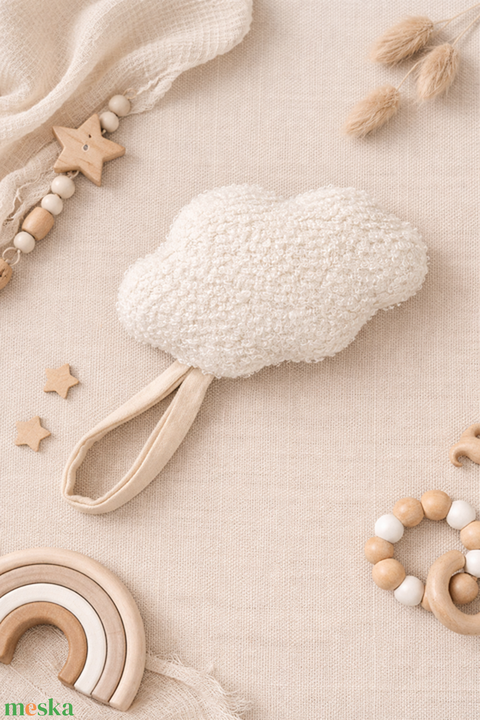 Puha, kézzel készült plüss cumitartó, amely nemcsak praktikus, hanem igazán szerethető kiegészítő is a mindennapokhoz. Segít, hogy a cumi mindig kéznél legyen, és ne essen le vagy vesszen el.