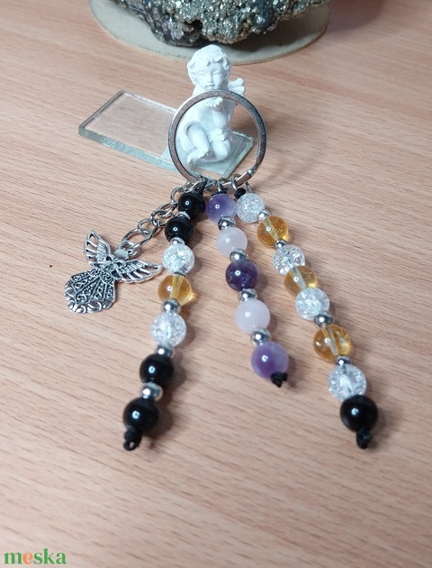 - Anyag/Összetevő ásvány gyöngy (ametiszt, rózsakvarc, citrin, fekete turmalin, hegyikristály), fém kulcskarika, ötvözet medál, ékszer zsinór, ásványgyöngyametiszt, feketeturmalin