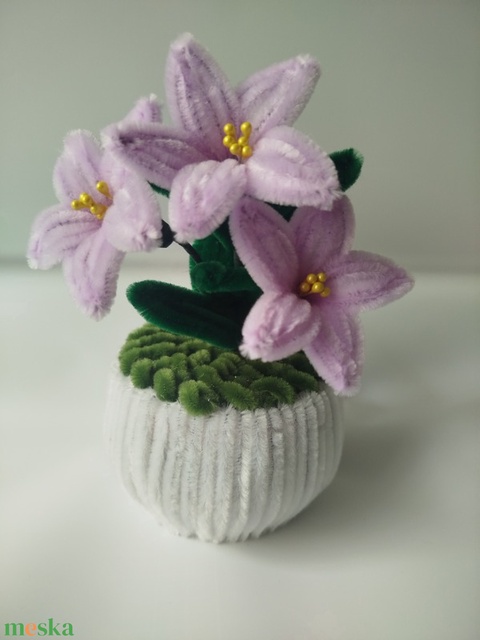 Kézzel készült lila liliom kaspó – örök virág, elegáns ajándék