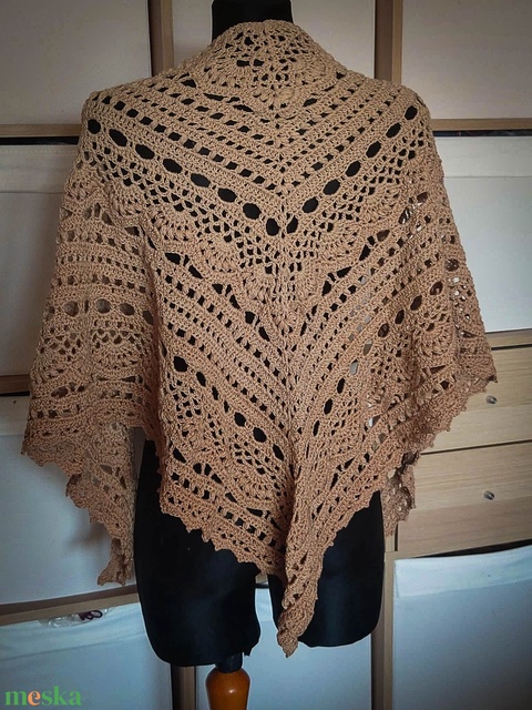 Barna horgolt csipke kendő