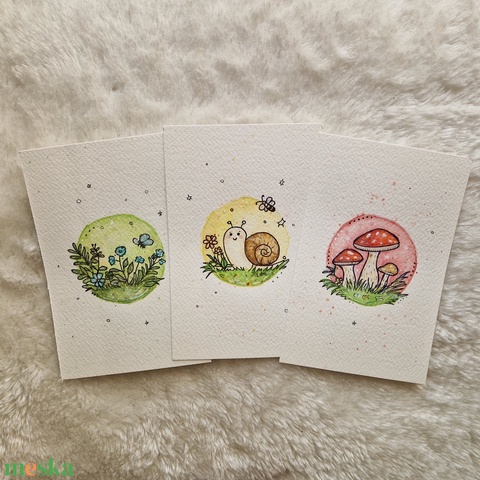 Mesés erdei akvarell kép szett – csiga, virág és gomba