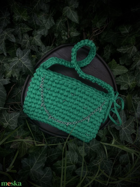 Kézzel készült, karakteres zöld táska