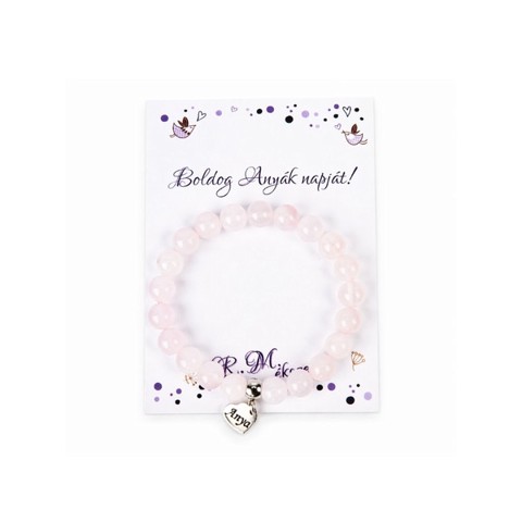 Boldog Anyák napját rózsakvarc karkötő Anya szívmedállal és ajándékkártyával