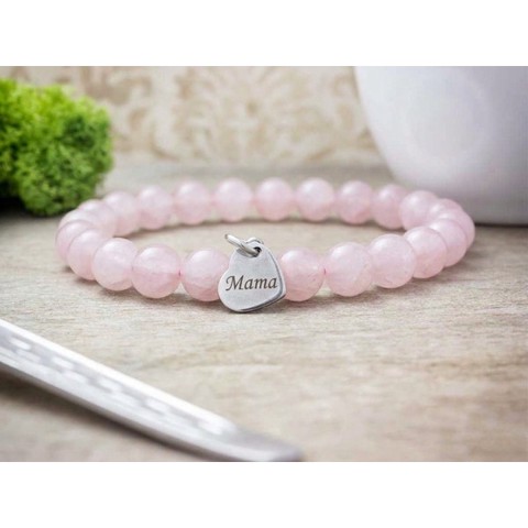 Szeretlek Mama rózsakvarc ásvány karkötő - ékszer - karkötő - ásványkarkötő - Meska.hu