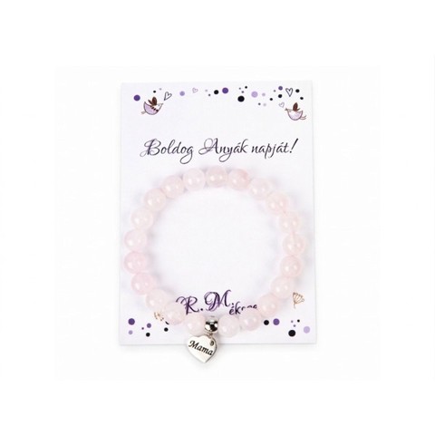 Boldog Anyák napját rózsakvarc karkötő Mama szívmedállal és ajándékkártyával