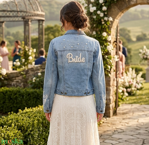 A koptatások és a puha tapintás miatt sokkal kényelmesebb, mint egy merev, új kabát. Virágos hímzés díszíti, „Bride” felirat pedig hozzásdja a csiilogást, ami egy menyasszonynak jár!