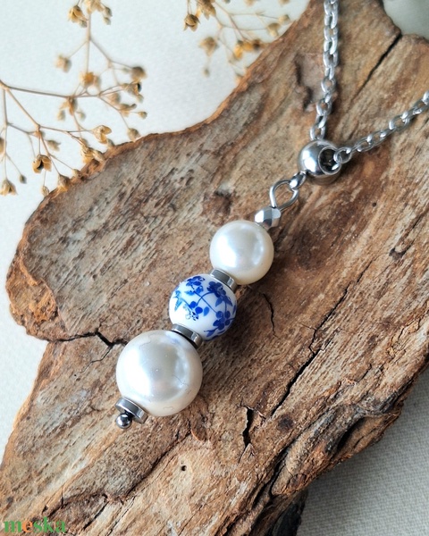 Kagylógyöngy medál acél láncon