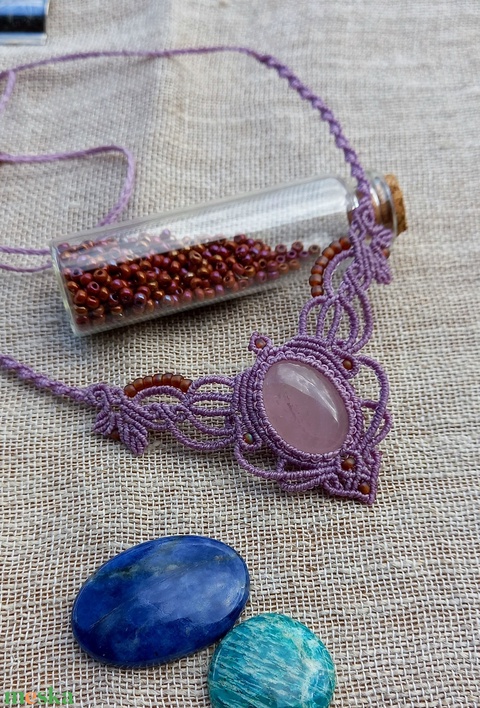 - Anyag/Összetevő linhasita viaszolt szál, rózsakvarc ásványkaboson, japán kásagyöngy