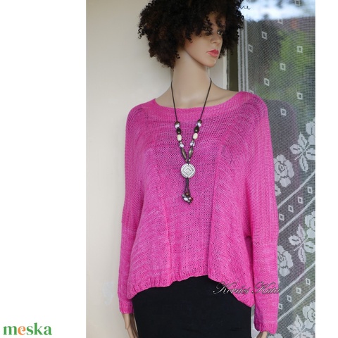 OPALMOON / luxy jak - exkluzív kézzel kötött, - festett finom selyem pulóver / ciklámen