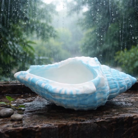 A textúra gyönyörűen ragadja meg az időjárás viszontagságaitól megviselt tengeri kagyló organikus bordáit és spiráljait, a kőszerű tartósságot lágy, éteri ragyogással ötvözve.