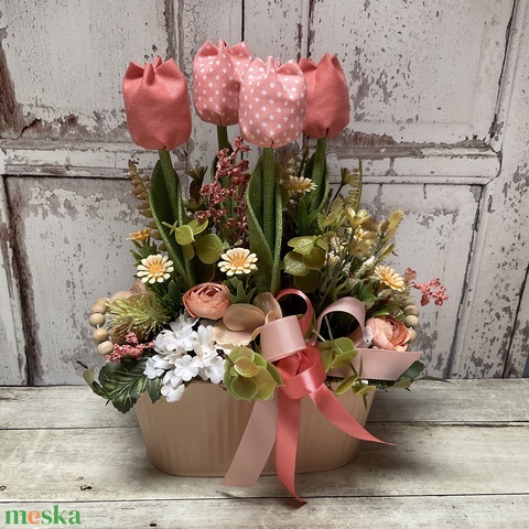 Tavaszi dekoráció textil tulipánokkal