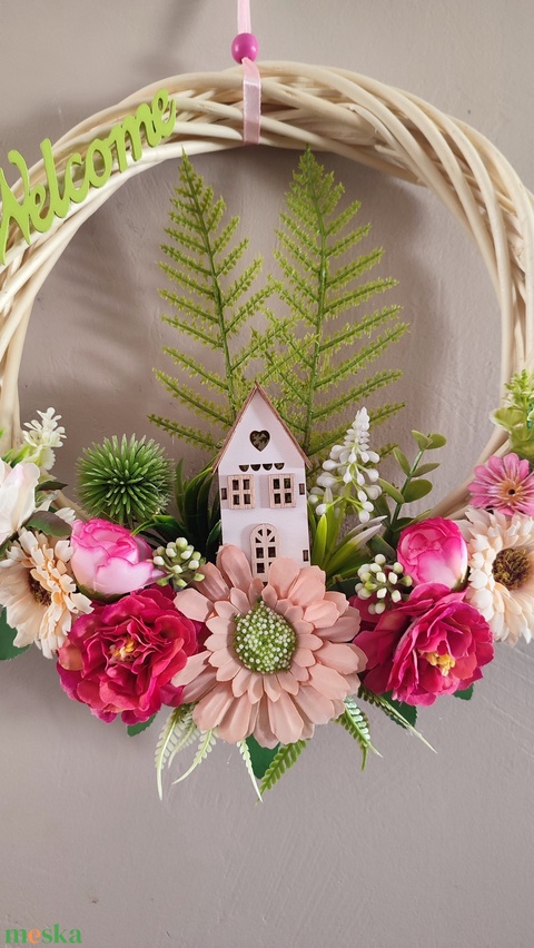Virágos -házikós hazaváró ajtódísz