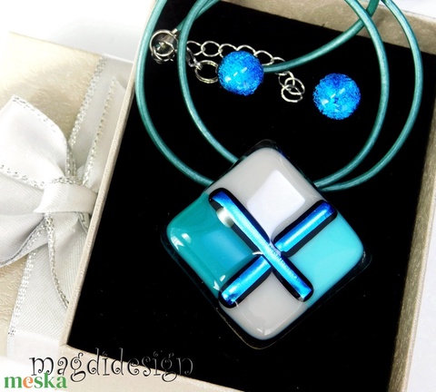 Absztrakt türkiz-beige üvegékszer szett Anyák napjára, ballagásra, születésnapra, névnapra