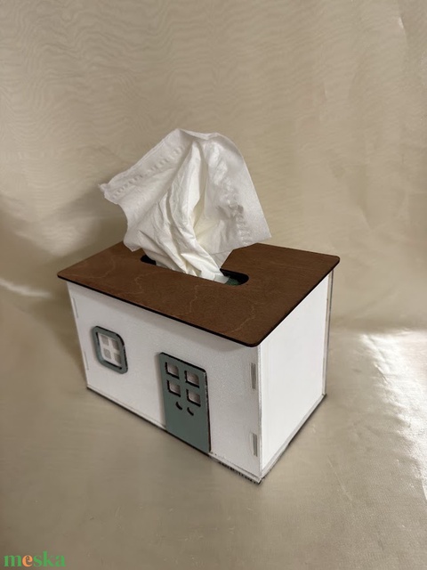 Kézzel festett fa zsebkendőtartó házikó – egyedi, dekoratív és praktikus lakásdísz