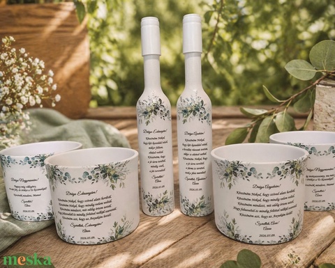 Egyedi szülőköszöntő ajándék szett – 2 díszüveg és 4 kerámia kaspó, esküvőre, felirattal 2.