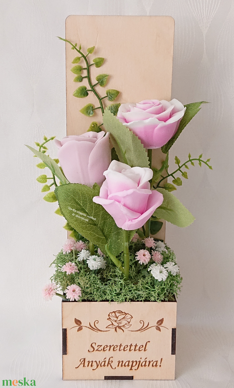 Szeretettel Anyák napjára! illatos szappanrózsák fa dobozban