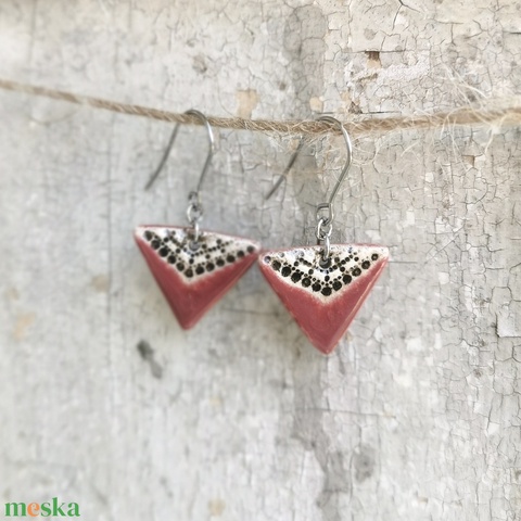 Kézzel készített kerámia háromszög fülbevaló - bordó, fekete-krém színű, minimalista dizájn