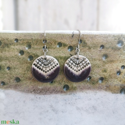 Kézzel készült kerámia fülbevaló - modern design sötét padlizsán lila színben