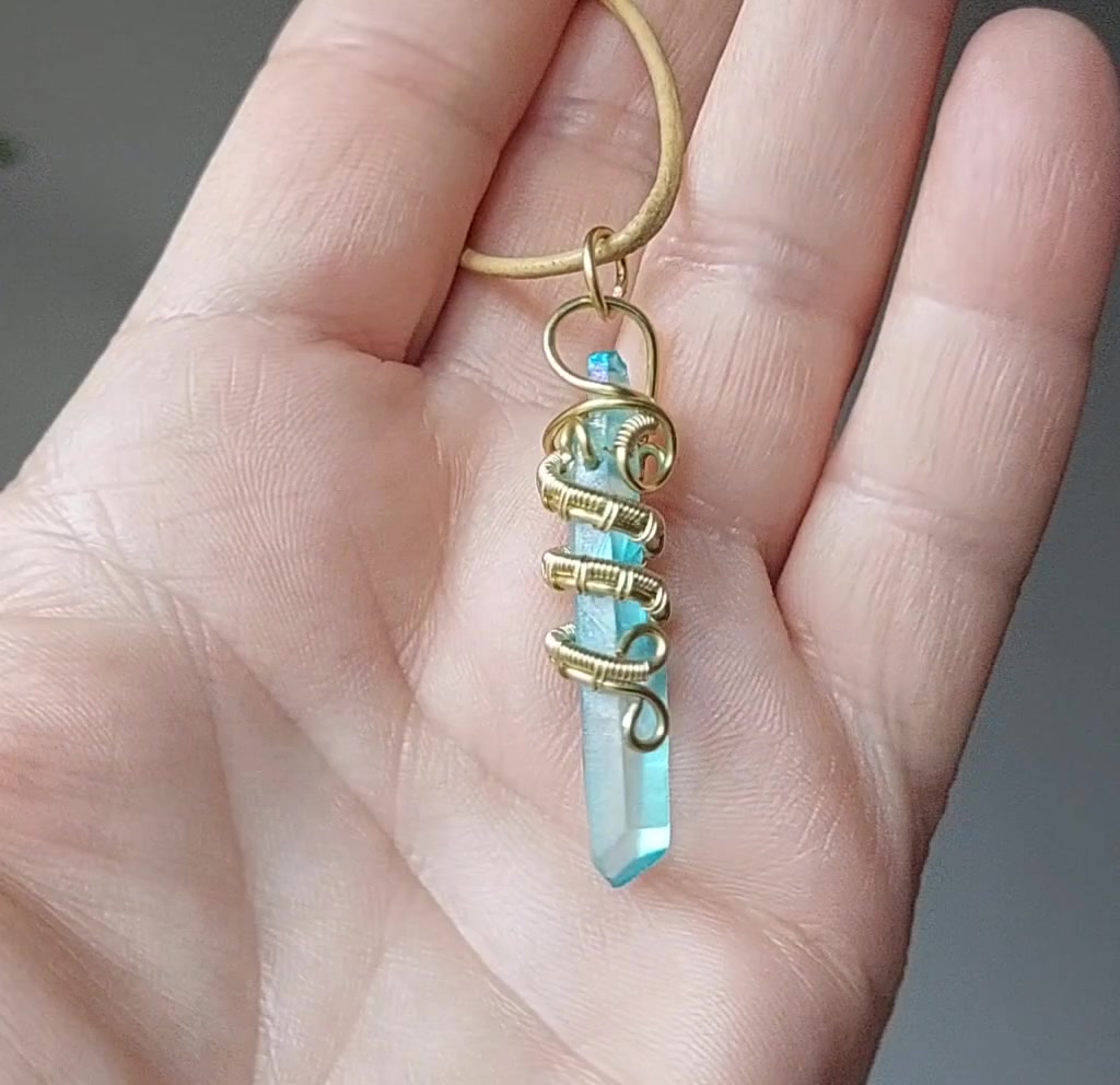 - Anyag/Összetevő ékszerdrót, aura kvarc
