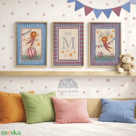 ,,Oroszlánok és csillagok" személyre szóló 3 db-os illusztrációs kollekció, babaköszöntő, keresztelő ajándék